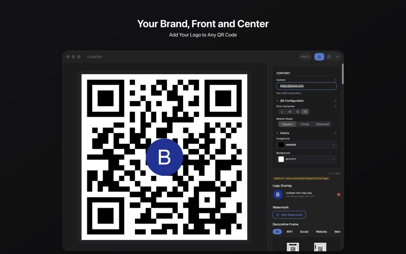 Download CodeGet and create professional, branded QR codes directly on your Mac.